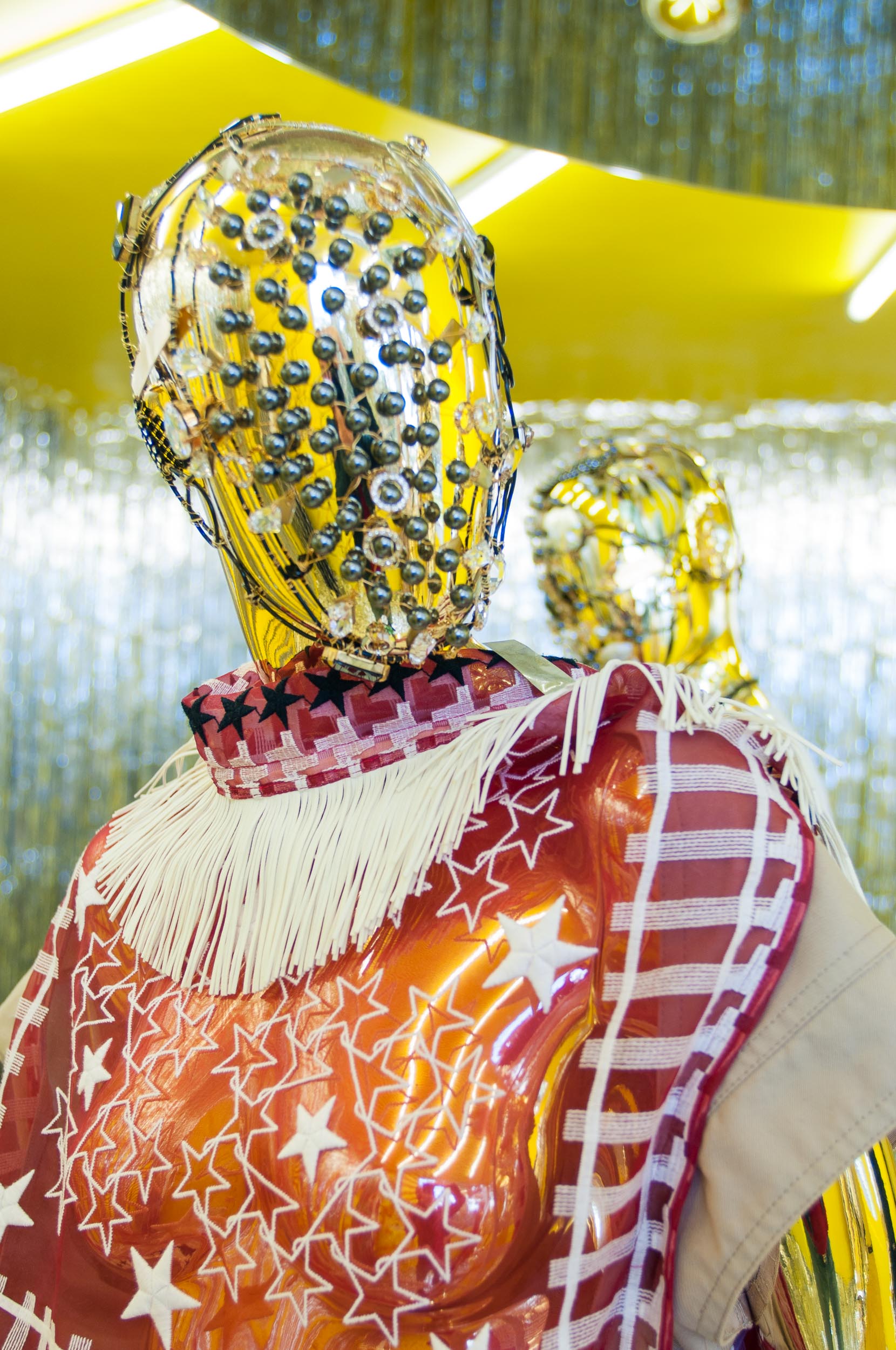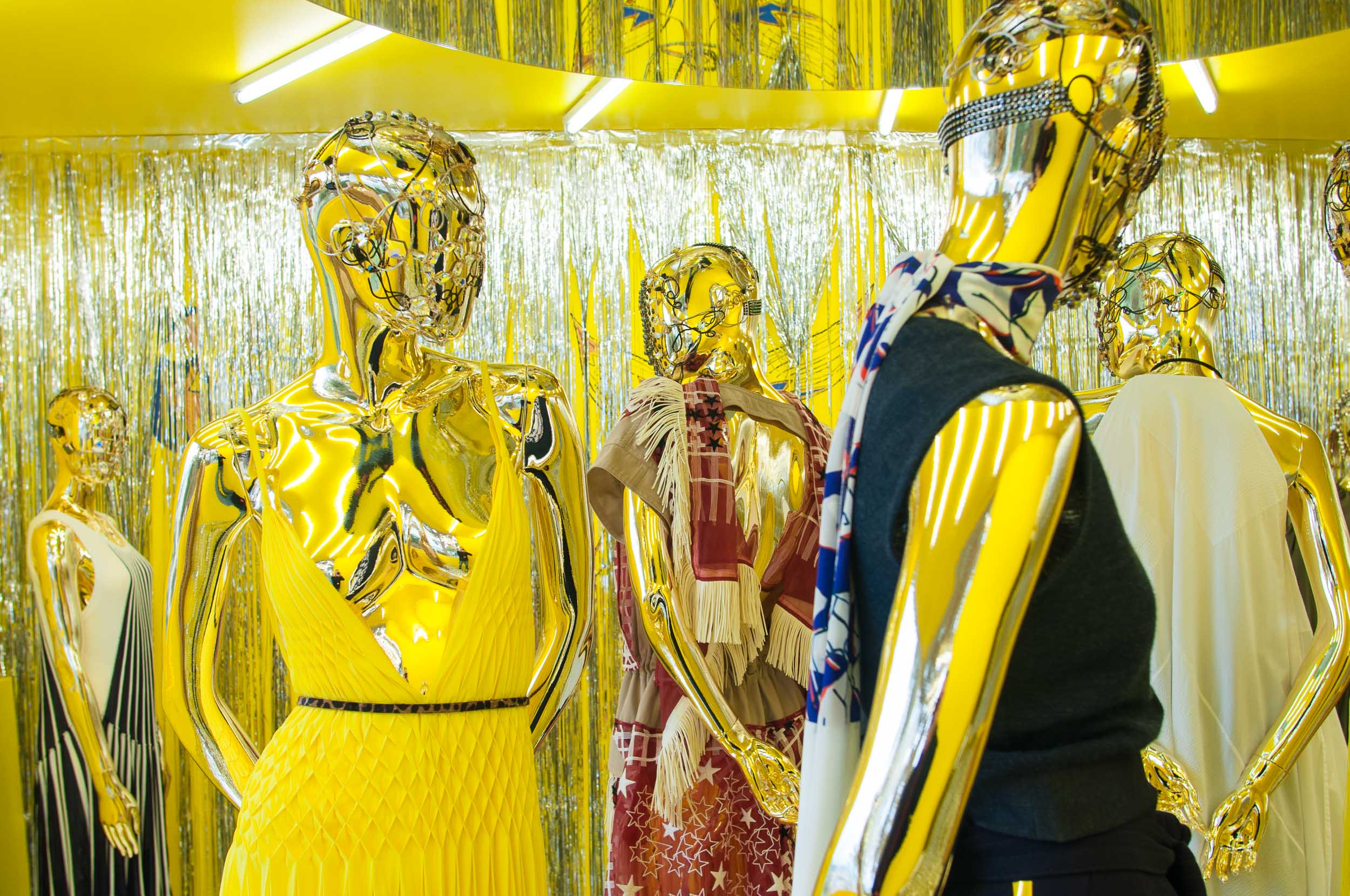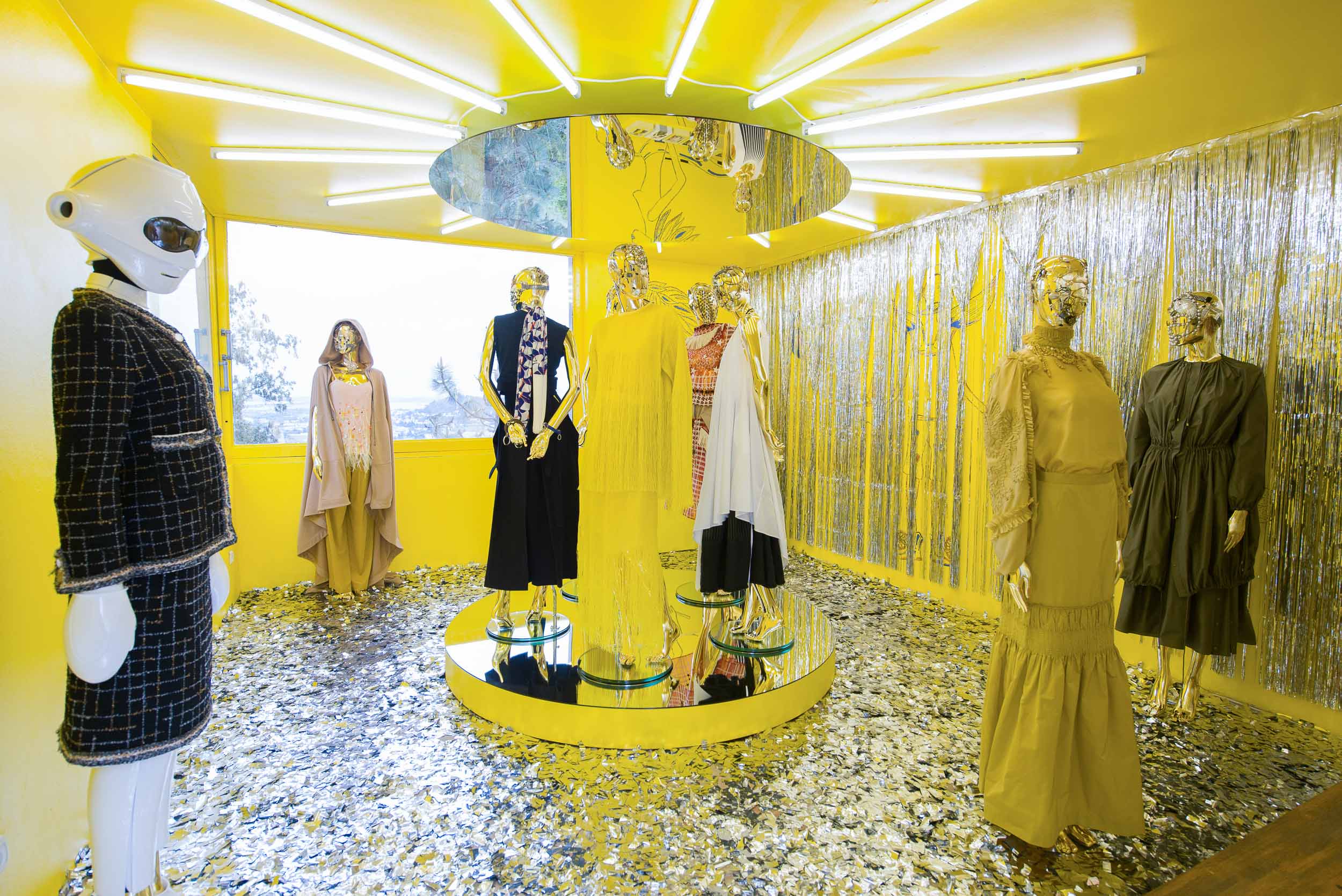 Dix luminous set also aims at celebrating the arrival of both the spring-summer collection and season. Dix is a party where five mannequins seem to be dancing on turntables when five others are part of the audience joined by visitors of the exhibition.